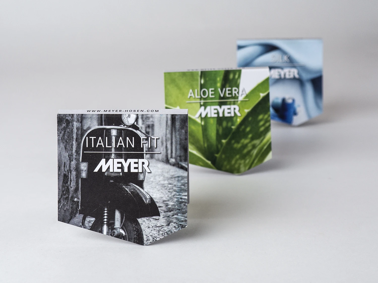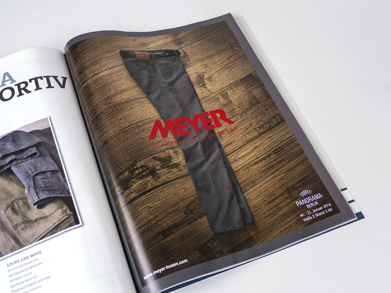 Das Familienunternehmen Meyer Hosen AG ist eine der führenden europäischen Spezialisten für Herrenhosen. Hochwertige Materialien, funktionale Details und die exzellente Passform machen die Meyer Hose zu etwas Besonderem. Das Unternehmen ist weltweit bestens aufgestellt, vor allem in China wird die Meyer Hose in einem Atemzug mit Nobelmarken europäischer Herkunft genannt.